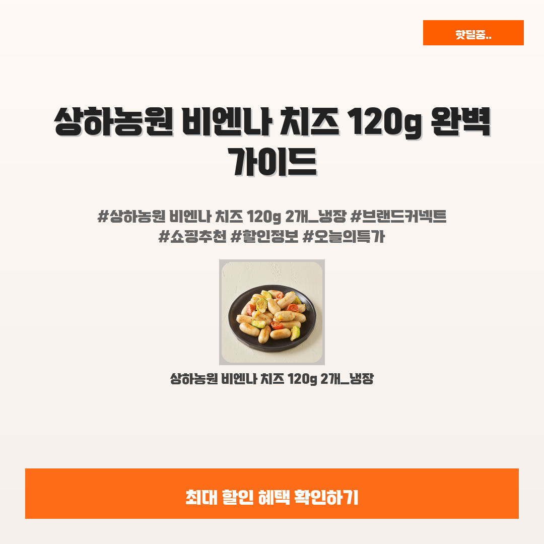 🛍️ 이 포스팅은 네이버 쇼핑 커넥트 활동의 일환으로,판매 발생 시 수수료를 제공받습니다.오늘 소개할 제품은 단연 최고의 선택,바로 상하농원 비엔나 치즈 120g 2개_냉장입니다!요즘 치즈에 대한 욕구가 강해지셨나요? 저도 그렇거든요!"상하농원 비엔나 치즈 120g 2개_냉장"으로 가득한 냉장고, 상상만으로도 행복하지 않나요?친구들과의 만남이나 피크닉, 갑작스런 손님이 찾아올 때 초대하고 싶은 마음이 드는 제품이에요.이 치즈를 나눠주면 "대박!"이라는 감탄사가 절로 나올 거예요. 진정한 치즈의 매력을 경험해보세요!믿어보세요, 후회는 절대 없을 선택입니다! 18% 할인으로 더욱 기분 좋게 구매할 수 있는 기회가 지금 바로 열렸어요.여러분도 이 행복한 순간을 함께 느껴보길 바랍니다!※ 이거 진짜 제가 직접..